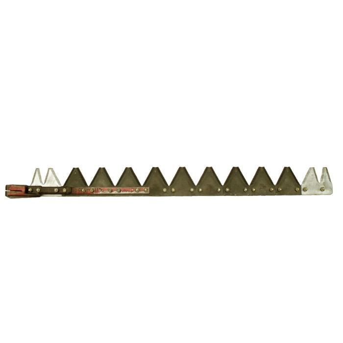 Hesston 8200/Case-IH 8340, 14' fine 14/in serration plated bolted w/ knifeheadSection has serrations on top - good all-around for coarse stem hay and alfalfaSerrations are self-sharpening*See UPS-able part# 102-022A; or*Call for LTL truck quote to ship as one-piece sickleReplacement for OEM# 700709623PL
