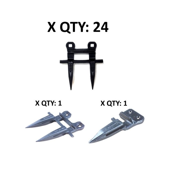 Hesston 6550, 6650, 6566, 6665, 6666, 1014+2; 12' G-215DH guard kitContents of Kit:1 - G-425 end guard1 - G430CTR center guard24 - G-215DH (Double-hardened, made in USA)Recommended hardware (not included in guard kit): Carriage bolt, 7/16" x 1-1/2", part# 458-216Carriage bolt, 7/16" x 1-3/4", part# 458-217Serrated flange nut, 7/16", part# 458-256