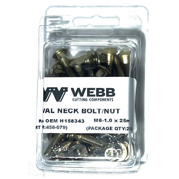 Description / JD 600 series 25-pc pkg M6-1.0 x 25mm oval neck bolt and nut