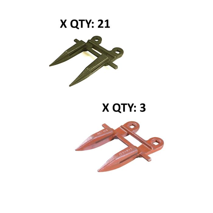 Case-IH 1290, 275, 375; 12' G-218DH guard kitContents of Kit:3 - G-210 head guards21 - G-218DH guard (Double-hardened, made in USA)Recommended hardware (not included in guard kit): Plow bolt, 7/16" x 1-1/2", part# 458-226Plow bolt 7/16" x 1-3/4", part# 458-227Serrated flange nut, 7/16", part# 458-256
