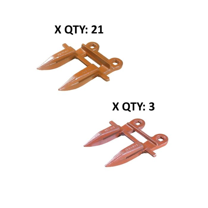 Case-IH 1290, 275, 375; 1490, 1590; 230, 4000, 5000 SGL and DBL Auger/Draper 12' G-270 guard kitContents of Kit:3 - G-210 head guards21 - G-270 guardRecommended hardware (not included in guard kit): Plow bolt, 7/16" x 1-1/2", part# 458-226Plow bolt 7/16" x 1-3/4", part# 458-227Serrated flange nut, 7/16", part# 458-256