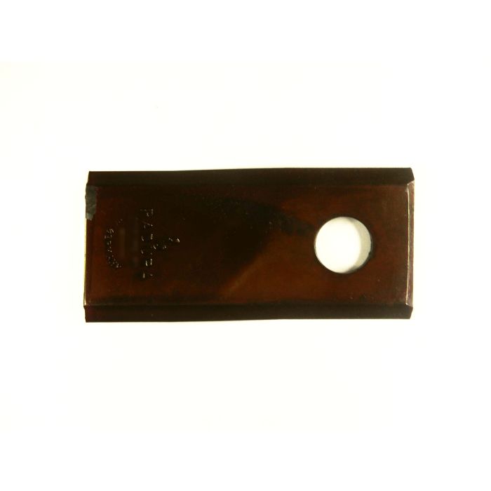 Gehl, Kuhn, New Holland disc mower knife 11-degree clockwise, top bevel, both upDimensions: .157" thick x 1.85" x 4.85" with .728" holeMatches knife 471-252Bolt 475-800Nut 475-801Fits: New Holland OEM# 784221; models: 463, 465Gehl OEM# 125446; models: DC2340, DC2360Kuhn OEM# 56451300; models: GMD44HD, GMD55HD, GMD66HD, GMD77HD