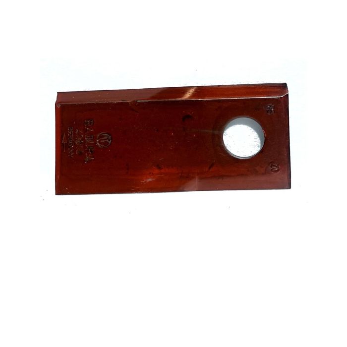 Case-IH, Fella, Gehl, Hesston, Vicon disc mower knife 11-degree clockwise, opposite bevel, bevel upDimensions: .157" thick x 1.85" x 4.213" with .720" holeMatches knife 471-122Fits:Case-IH OEM# 700711857; models: 8309, 8312, 8315, 8850Fella OEM# 478641; models: SM120, SM240Gehl OEM# 612635 models: DC2330 after SN2226Hesston OEM# 700711857; models: 1320, 1340, 1360, 1365, 870, 8500, 9240, 9260, 9365Vicon OEM# 90261559; models: CM215, CM217, CM2200, DMP2800, KM281