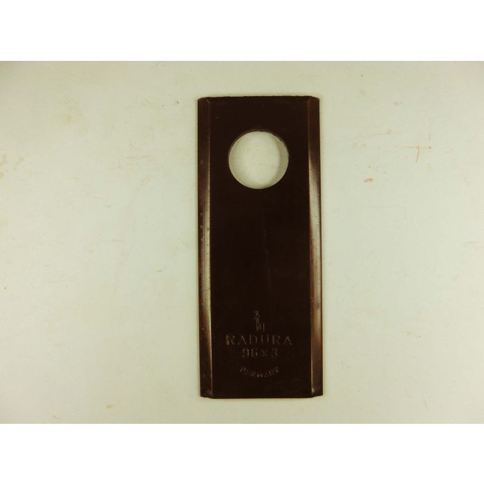 Deutz-Fahr, Fella, Krone, disc mower knife, flat CW/CCWDimension: .118" thick x 1.6" x 3.78" with .75" holeFits:Deutz-Fahr OEM# OEM# 13712427, 570404Fella OEM# 116954Krone OEM# 13712427, 570404