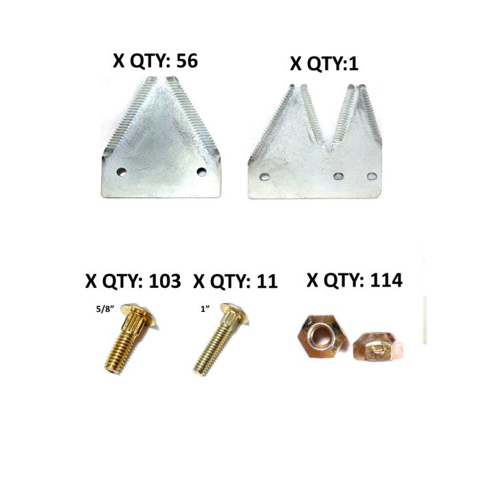 Hesston 200 and New Holland 905 top serrated plated 14’ Section Refill KitContents of Kit 56-HTSPL 12-ga Sections 206-0241-RH DBL End Section 207-313.5114- Nut cone lock 458-00711 - 1" Bolts 458-003103 - 5/8" Bolts