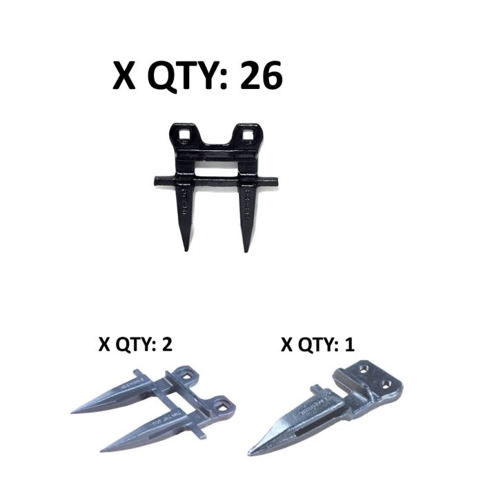Hesston 8400, 8450, 9230, 9340, 1170, 1270, 1275; and Case-IH 8840, 8870, 8380 14' G-245DH guard kitContents of Kit:1 - G-425 end guard2 - G-430CTR center guards26 - G-245DH guardRecommended hardware (not included in guard kit): Carriage bolt, 7/16" x 1-1/2", part# 458-216Carriage bolt, 7/16" x 1-3/4", part# 458-217Serrated flange nut, 7/16", part# 458-256