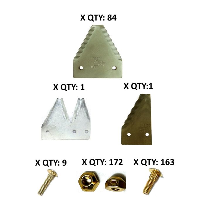 John Deere 1209-Early, 800, 830, 880, 2250, 2270 fine 14/in plated 21' Section Refill KitContents of Kit 84 - Fine 14/in plated sections 205-0231- RH Double end section - 207-3101- LH ½ section 207-084172- Nut cone lock 458-0079 - 1" Bolts 458-003163 - 5/8" Bolts 458-001