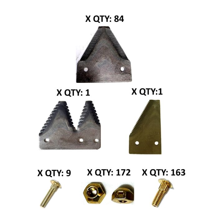 John Deere 1209 Early, 800, 830, 880, 2250, 2270 underserrated 21' Section Refill KitContents of Kit 84-XHUS Sections 202-9901- RH Double end section - 207-3221- LH ½ section 207-084172- Nut cone lock 458-0079 - 1" Bolt 458-003163 - 5/8" Bolt 458-001