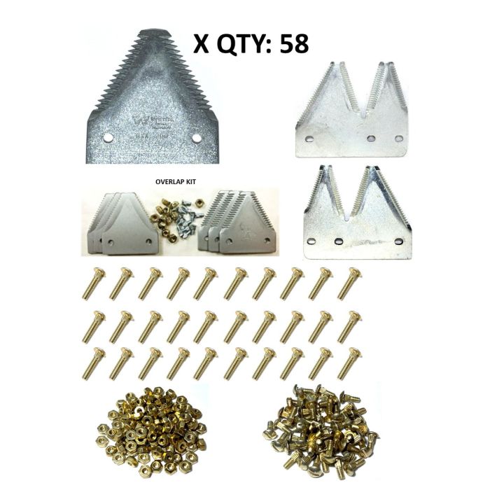 John Deere 1525, 1600, 3830, #300-300A large serration plated Section Refill KitContents of Kit 58 -XHTSPLLS Sections 207-1021- RH Double end section - 207-313.51- LH Double End 207-3141- Overlap Kit 207-432120 - Nut cone lock 458-00730 - 1" bolts 458-00390 - 5/8" bolts 458-001