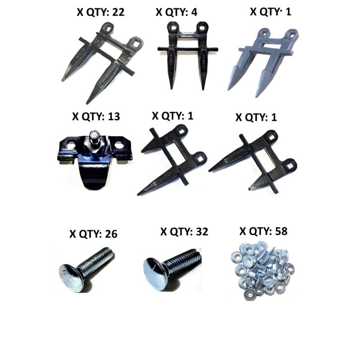 MacDon 920, 922, 7000 Double Drive Complete Cutterbar Rebuild Kit 14'Model: 920, 922-14' DoublesModel: 7000-14' Auger Header Double DriveKit includes:13 - Adjustable hold down clips, replacement for OEM# 28815 - 457-054A22 - Guards, replacement for OEM# 118344 - G-344DH4 - Head Guards, replacement for OEM# 118345 - G-3451 - Center guard, replacement for OEM# 33114 - G-415CTR1 - LH End Guard, replacement for OEM# 118301 - G-3011 - RH End Guard, replacement for OEM# 118302 - G-30226 - 7/16 x 1 3/4 Carriage bolts - 458-21732 - 7/16 x 1 1/2 Carriage bolts - 458-21658 - 7/16 Flange nuts - 458-256