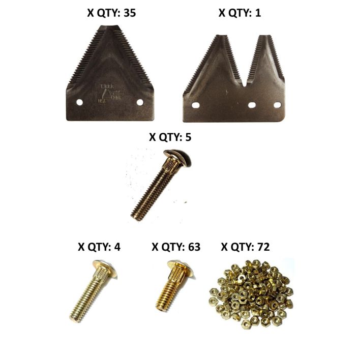 New Holland 460 top-serrated 9' Section Refill KitContents of Kit 35-XHTS Sections 205-0061-RH DBL End Section 207-31072- Nut cone lock 458-00763 - 5/8" Bolts 458-0014 - 1" Bolts 458-0035 - 1 1/4" Bolts 458-005