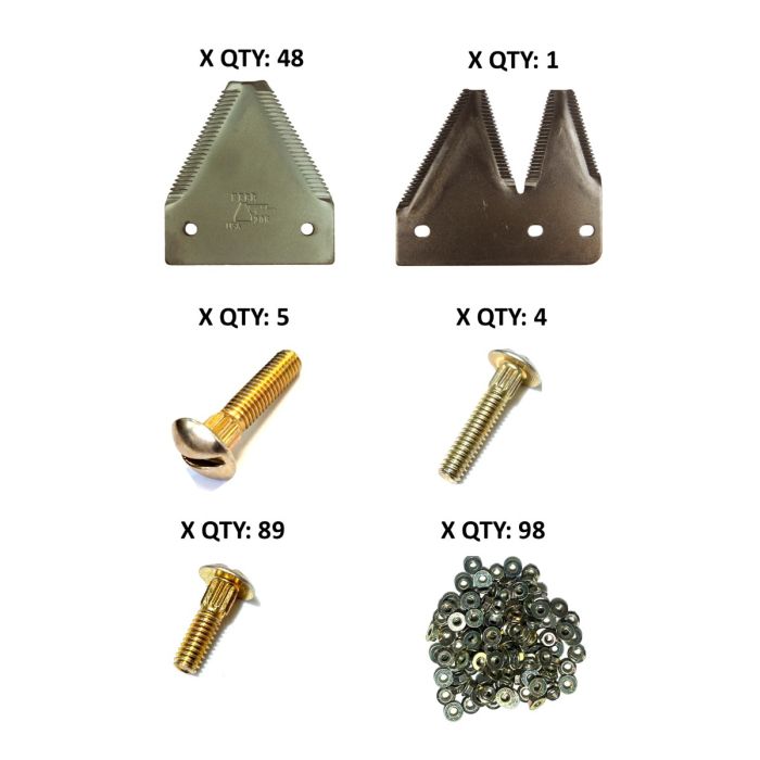 New Holland 495, 1495 top serrated plated 12' Section Refill KitContents of Kit 48-XHTSPL Sections 205-0261-RH DBL End Section 207-313.598- Nut cone lock 458-0075 - 1 1/4" Bolts 458-0054 - 1" Bolts 458-00389 - 5/8" Bolts 458-001