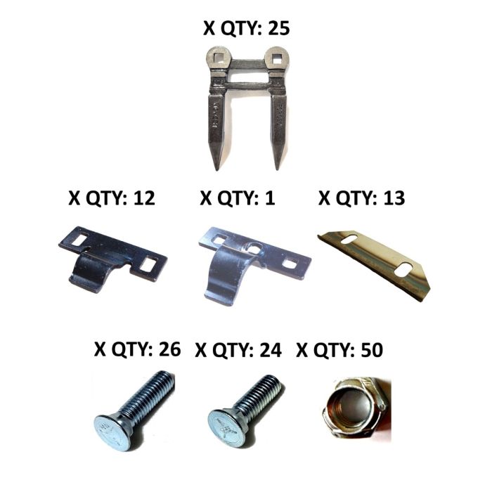 Gleaner Early Series Flex Platform Complete Cutterbar Rebuild Kit 13'For 3" CutKit includes:12 - Hold down clips, replacement for OEM# 71189684, 71346158 - 457-0551 - High hold down clip - 457-05013 - Wearplates, replacement for OEM# 71116532, 71176537 - 457-00125 - Guards - G-23126 - 7/16 x 1 3/4" Plow bolt - 458-22724 - 7/16 x 1 1/2" Plow bolt - 458-22650 - 7/16 Flange nut - 458-256