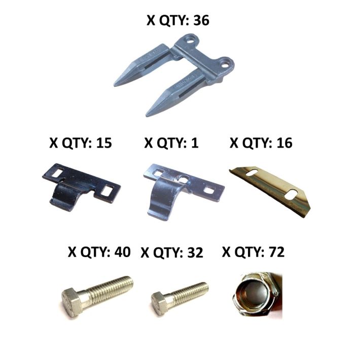 Gleaner Late Series 3 - Series 8 Complete Cutterbar Rebuild Kit 16'For 3" CutKit includes:15 - Hold down clips - 457-0551 - High hold down clip - 457-05016 - Wearplates - 457-00136 - Guards - G-22640 - 3/8 x 1 1/4" Hex Plow bolt - 458-27632 - 3/8 x 1 1/2" Hex Plow bolt - 458-27772 - 3/8 nut - 458-250