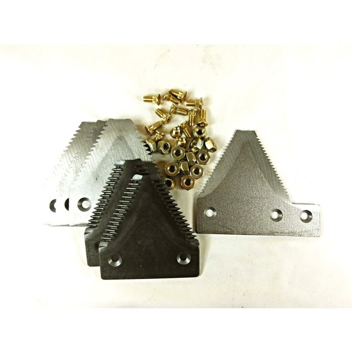New Holland-Late big tooth 10/in serration section overlap kitContains:3 bottom countersunk sections2 top countersunk sections1 overlap end (Tomahawk) section13 82-degree countersunk bolts13 cone lock nutsReplacement for OEM# 86616728
