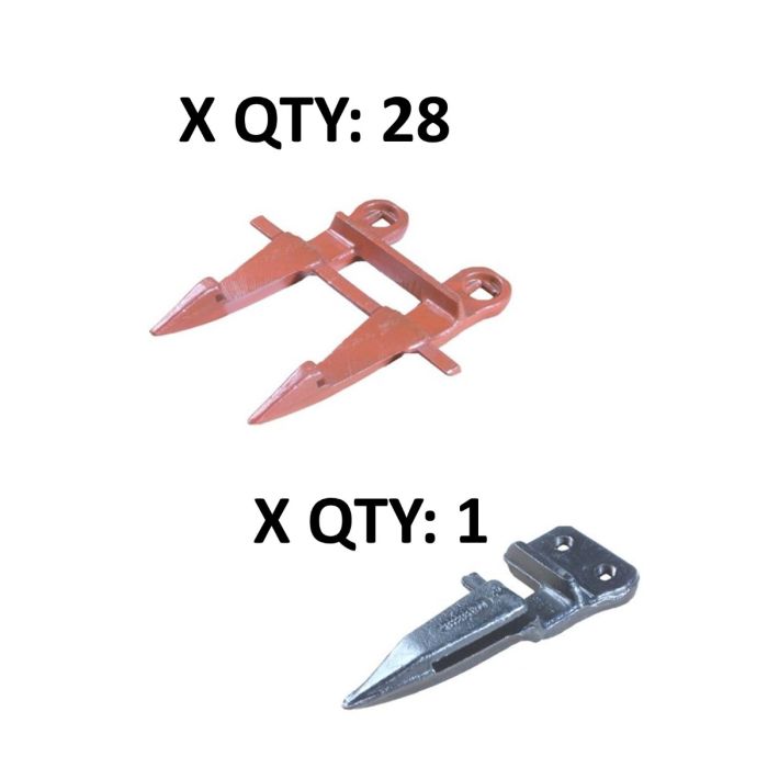 Hesston 520, 620, 1014, 6200, 6400, 6450, 6465, 6600, 6610; 8200, 8250, 1160, 1260, 1265; 14' G-260 guard (bottom) kitContents of Kit:1 - G-425 end guard28 - G-260 forged guard (bottom)Note: G-261 formed low top, and G-262 formed high top sold separatelyRecommended hardware (not included in guard kit): Carriage bolt, 7/16" x 1-1/2", part# 458-216Carriage bolt, 7/16" x 1-3/4", part# 458-217Serrated flange nut, 7/16", part# 458-256