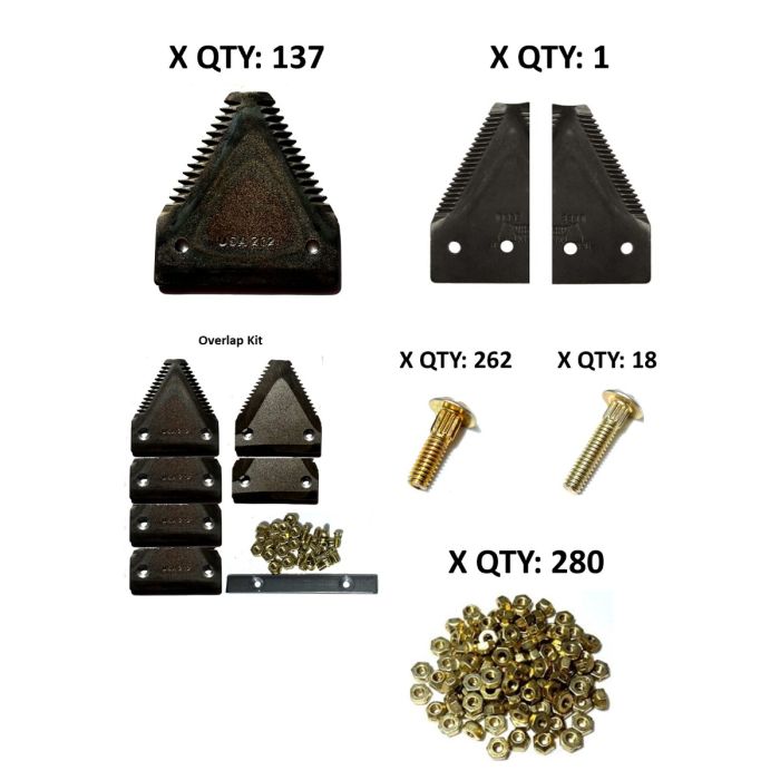 MacDon 972 Multi Crop Harvest Header Double Drive 36' Large Serrated Section Refill KitContents of Kit137-XHTSLS Sections 217-1201 - LH Half Section 207-0951 - RH Half Section 207-096280 - Lock Nut 458-007Overlap Kit - 207-44618 - 1" bolts 458-003262 - 5/8" bolts 458-001